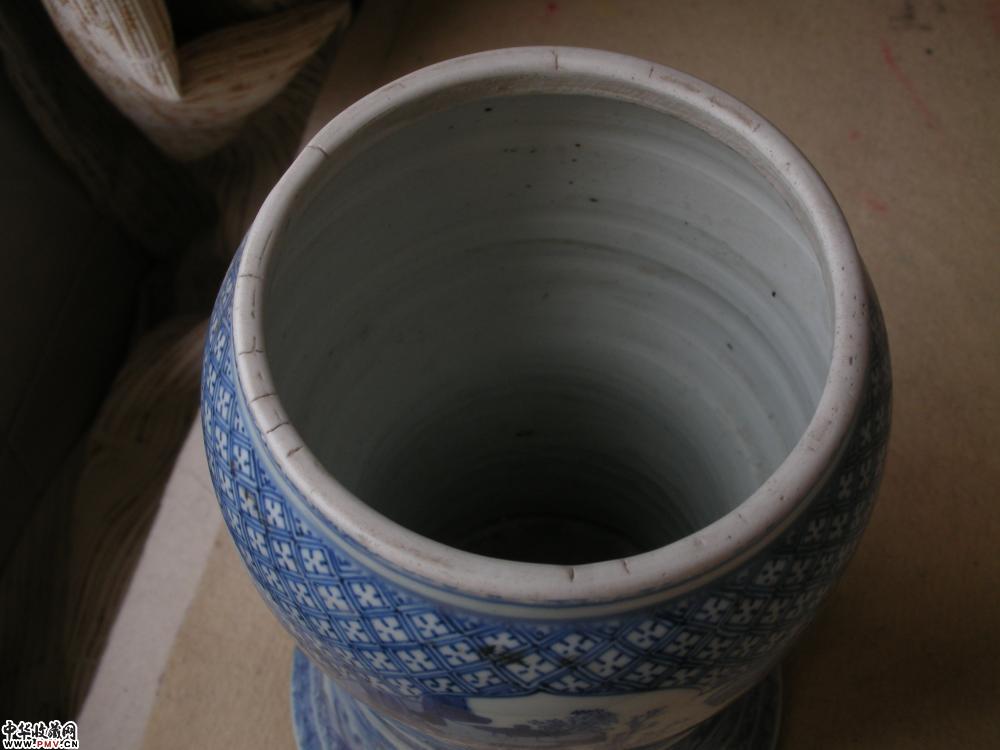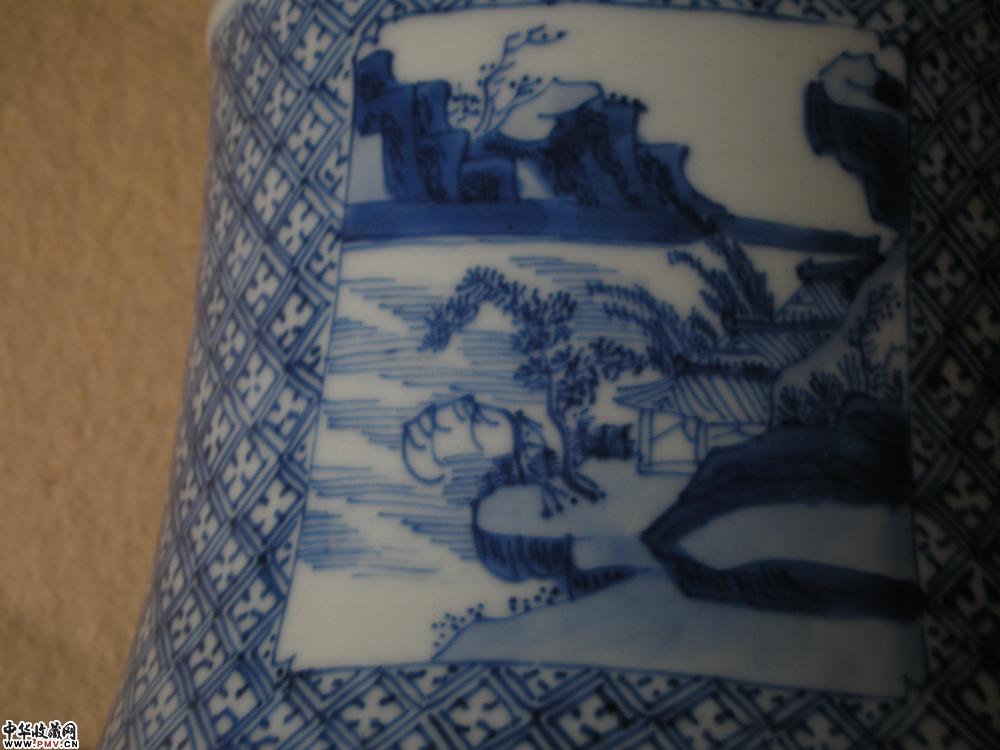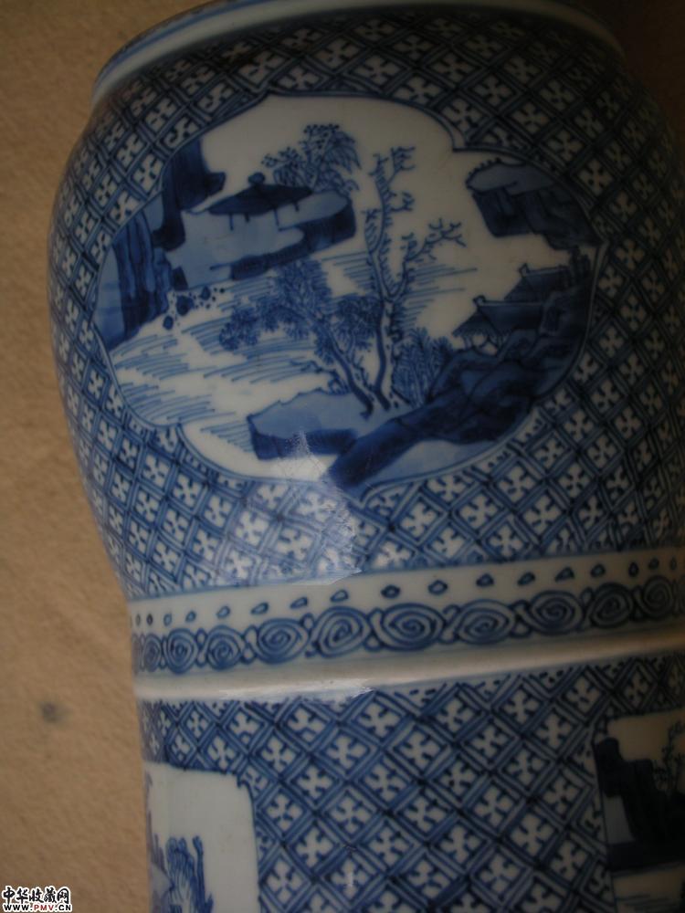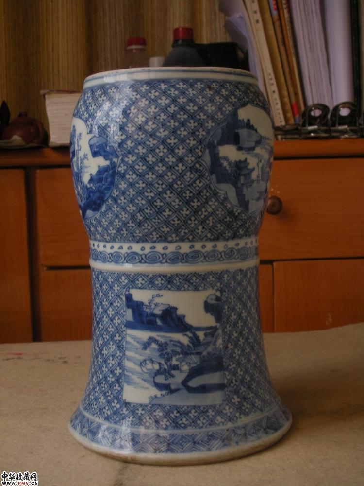康熙 青花开光山水人物纹花觚(下装)