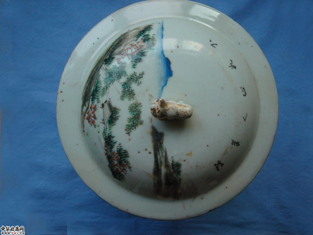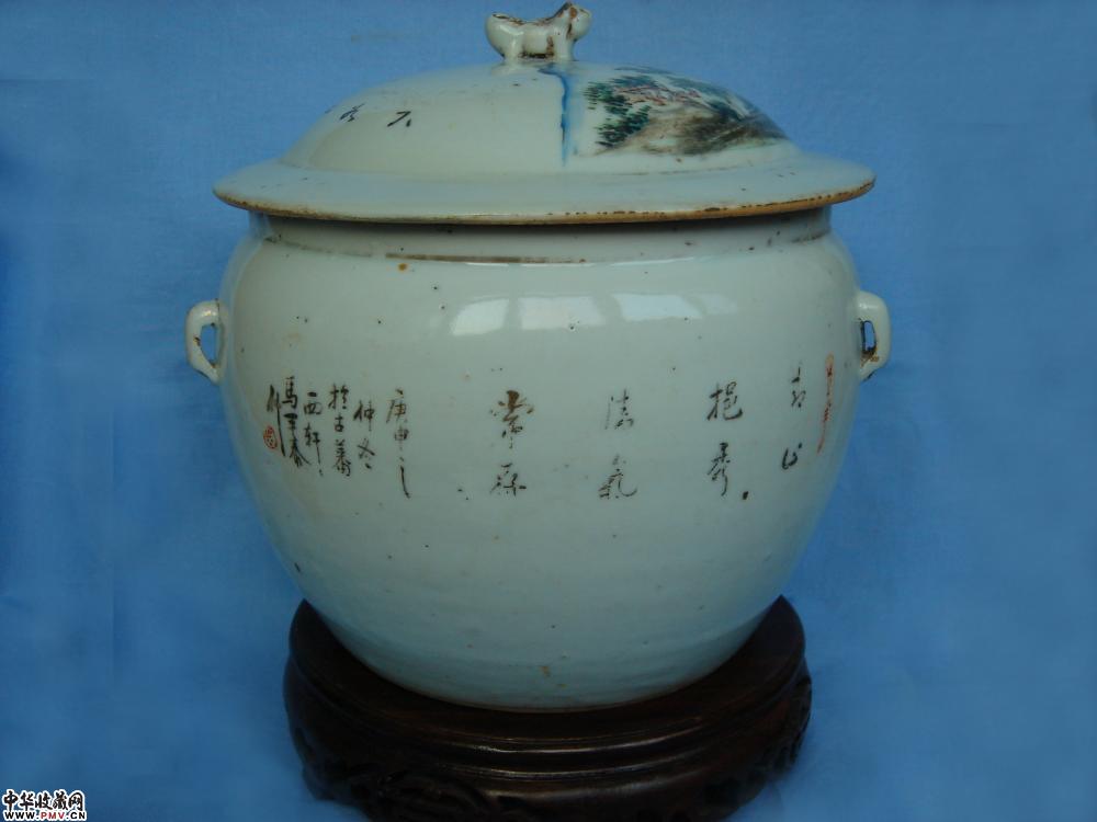 民国 1920年 山水浅绛彩粥罐 [青山挹秀 清气常存 庚申仲冬古蕃西轩马丰泰] 盖[六如山人笔法]