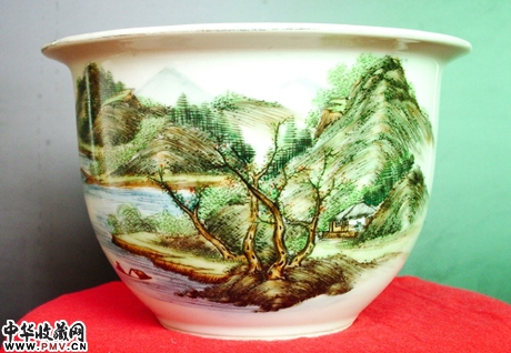 民国*浅降彩山水花盆
