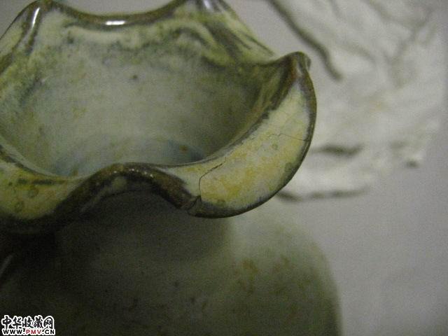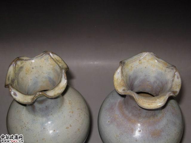 高28地径9厘米。一口小磕粘合。宋代主要是指钧官窑器而言,就目前资料,民窑神垕的刘家门窑址在宋末也有烧制,以前因为没有确切的证据证明,一般都误认为是元代钧窑器,2001年,由北京大学文博学院秦大树教授带领的专家组在神垕刘家门进行发掘,发现多处窑址,证实宋末民间有钧瓷烧制,这次考察入选2001十大考古发现之一。出土样本做工明显与钧台窑不同,另外,钧台窑器物底部均可有从“一……十”的汉字数码字,民窑没有。元代器物没有通体红釉和紫色,一般以蓝钧点斑为主,红斑泛紫,僵硬,做工粗糙,做工一般以底部和口沿观察。目前公认,还没有证据确证明代钧瓷的烧制。清代仿钧又称卢钧,是由神垕陶工卢振太、卢振中及子侄辈、天福、天恩、天增兄弟在光绪年间仿制成功的,其本意是因为古玩界钧窑器物价格高走,且奇货可居,才开始不惜代价仿制。在釉中引入了氧化钴,因清钧是以仿宋钧官窑为出发点,一些产品达到了几可乱真的地步,大英博物馆曾以宋钧收藏,当时古玩界有“谨防卢瓷,小心上当”之说。