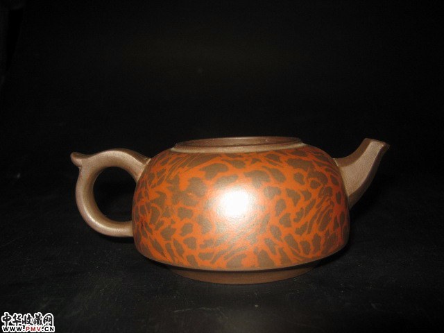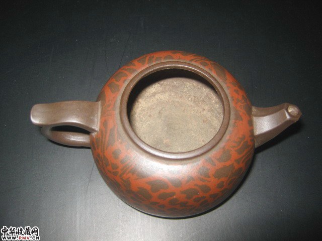 紫砂红彩龙纹壶