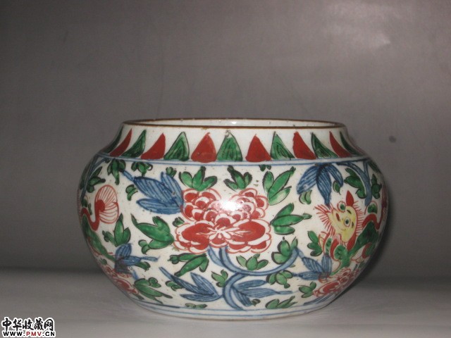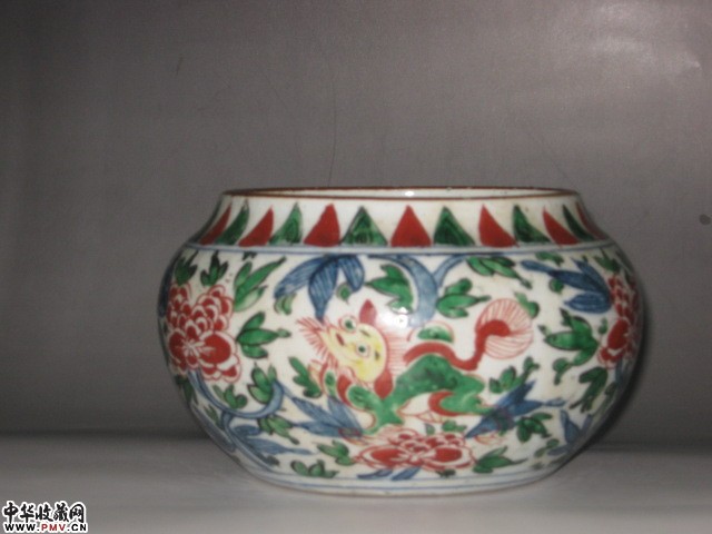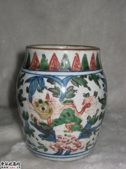 五彩狮纹花卉罐两件