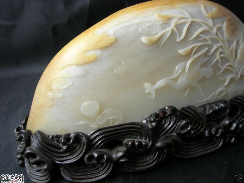 【简 介】上海大师尹文骏工作室的作品。有一定眼力的朋友可以看出。虽然工艺不是那么复杂,但刀刀有力显功底,线条流畅,是难得的摆件。料子也是非常的细,皮肉聚在。