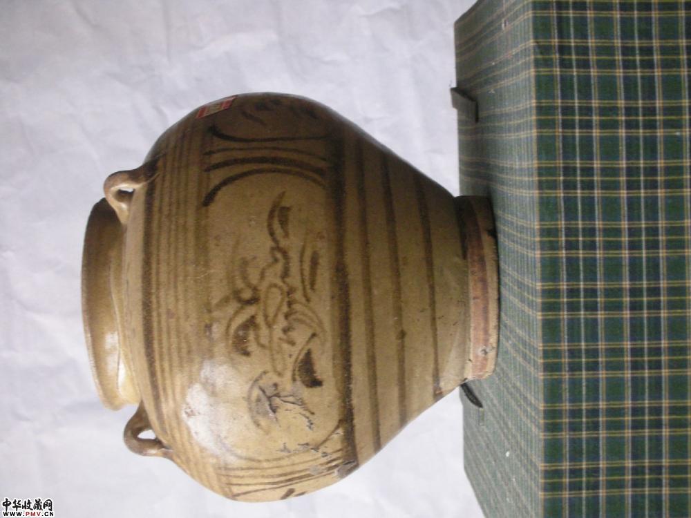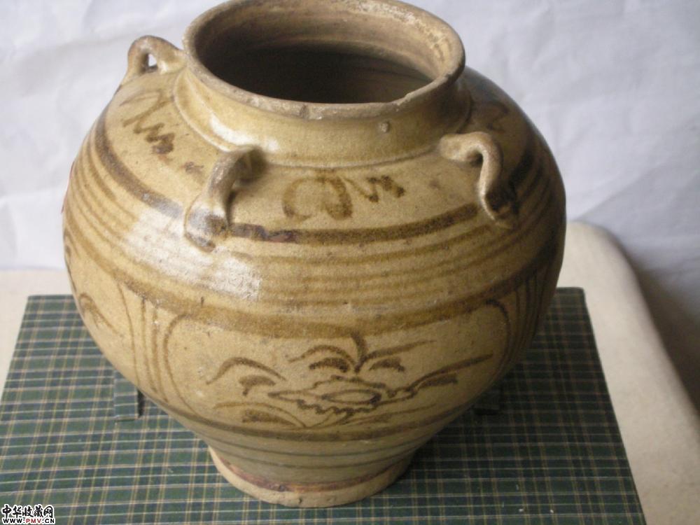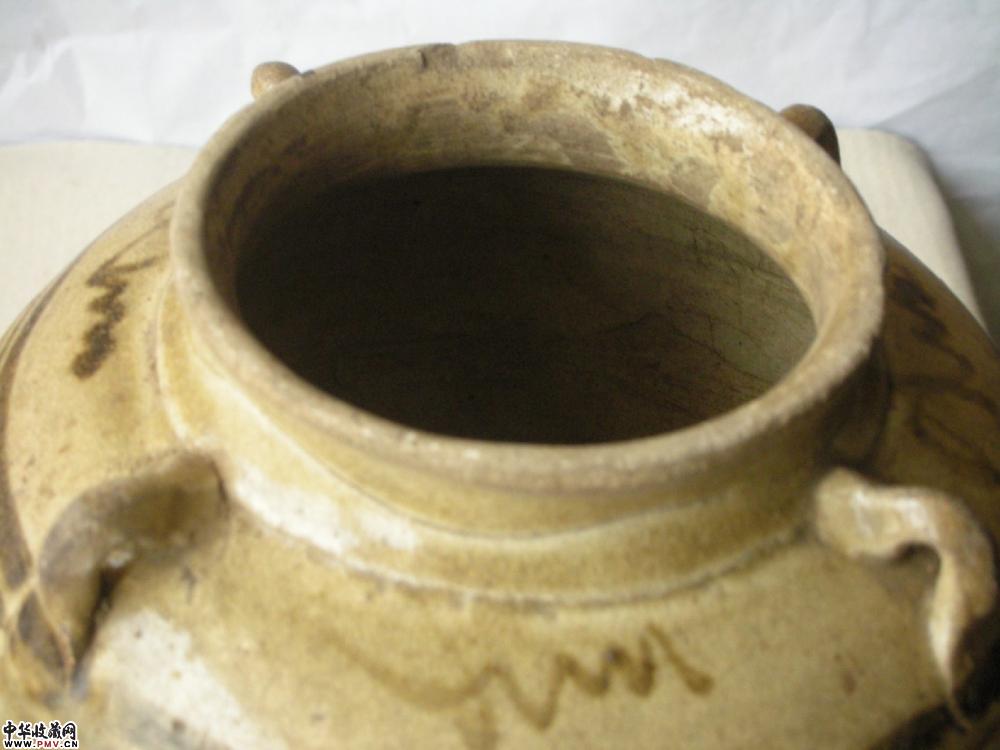 元 雷州窑青釉褐彩四系罐