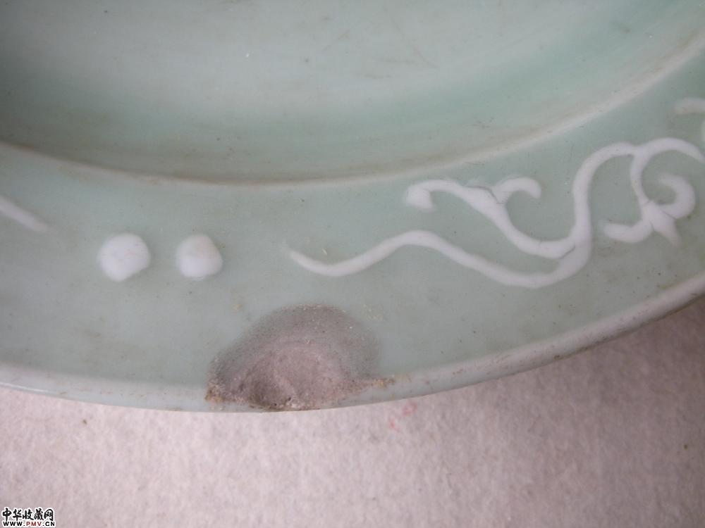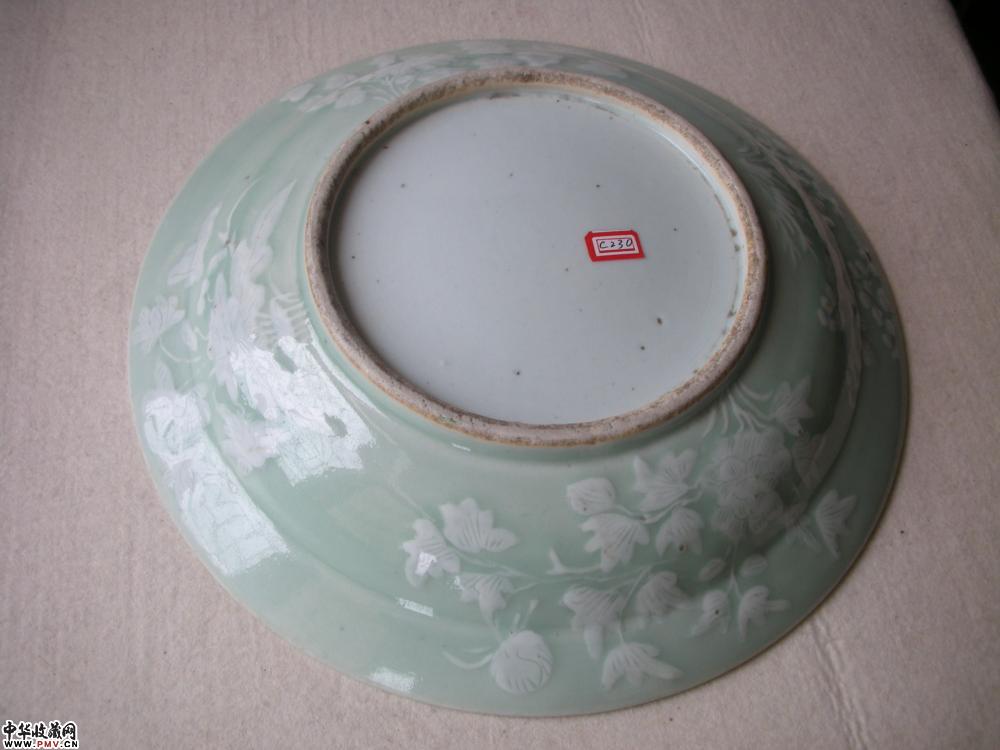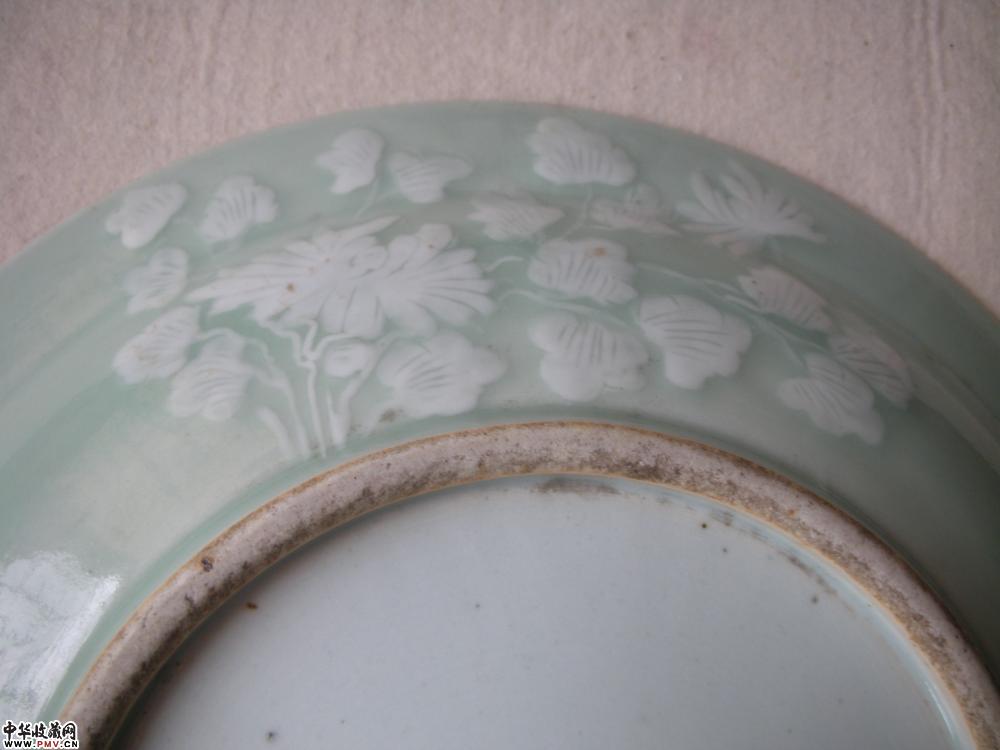 清 豆青地凸塑花纹碟