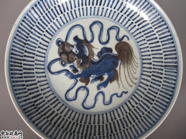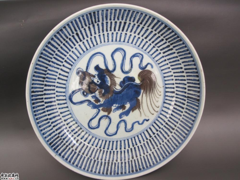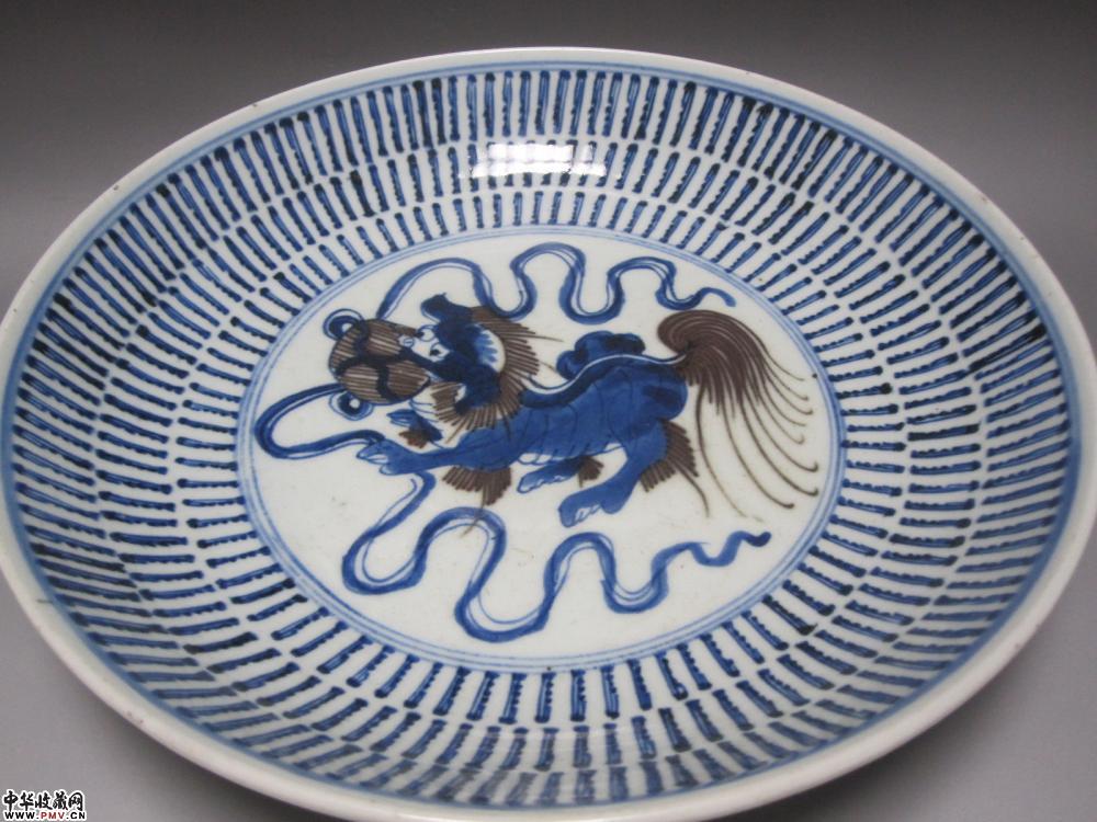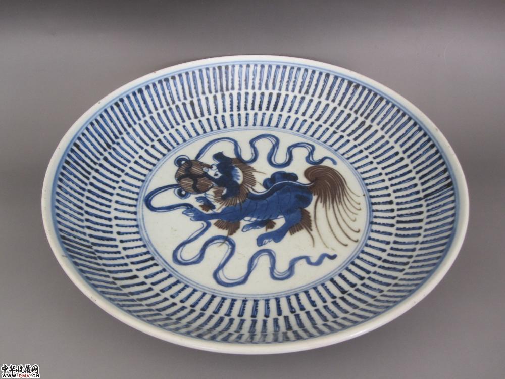 P清乾隆青花釉里红狮纹盘