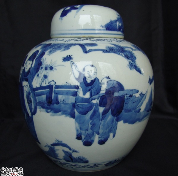 光绪青花人物罐