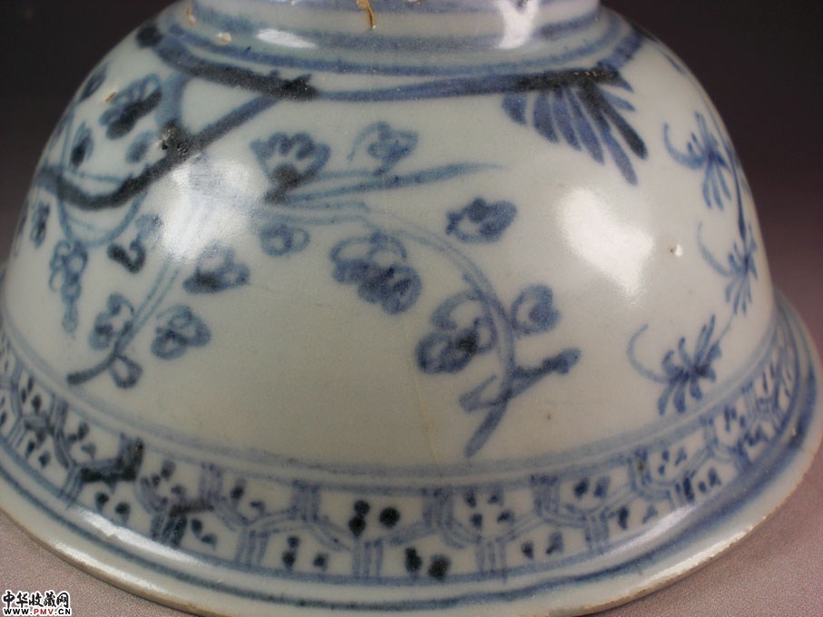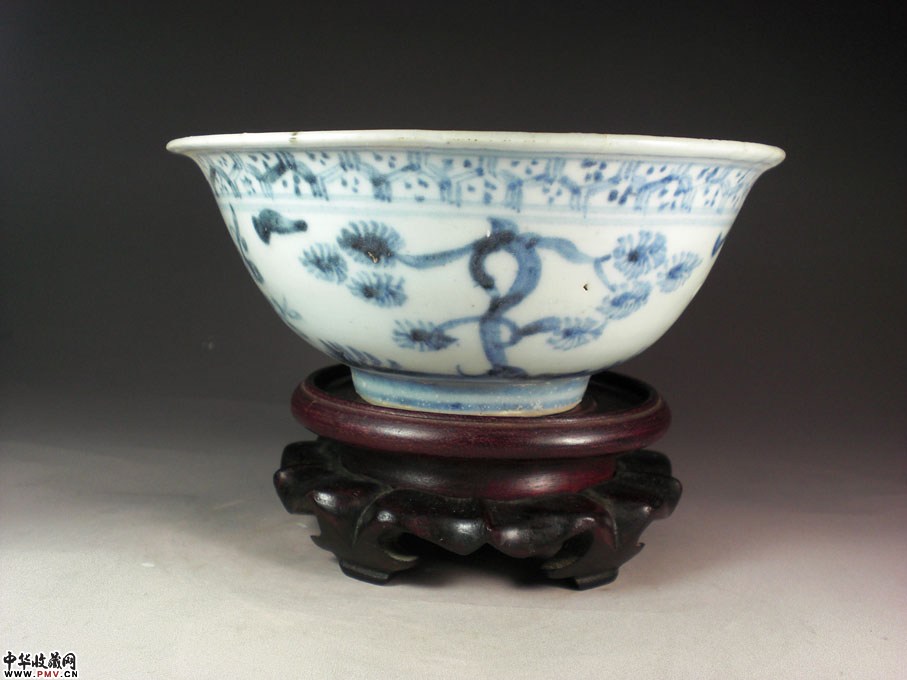 口径15.5厘米,口沿一条1厘米左右的小暗线,由于施釉厚,身上有一条惊釉线,不透,不是冲线,和开片的性质一样,圈足06厘米小窑裂,已精修,其它完好!图片反映清楚!此碗画松竹梅,乃岁寒三友,题材非常好,画工随意流畅,笔力挺拔,可见绘画功底之深厚,在民窑作品中已算精品,修足内外斜削,刀法干净利落,流畅自然,胎釉结合处火石红过度自然,青花发色深沉,一切特点都符合其时代特征!虽有点小毛病,可毕竟从题材 画工 发色 年份上等,都算的上一件很不错的收藏品,希望大家能够喜欢!兄好!起拍暂定2000好吗?参考!
