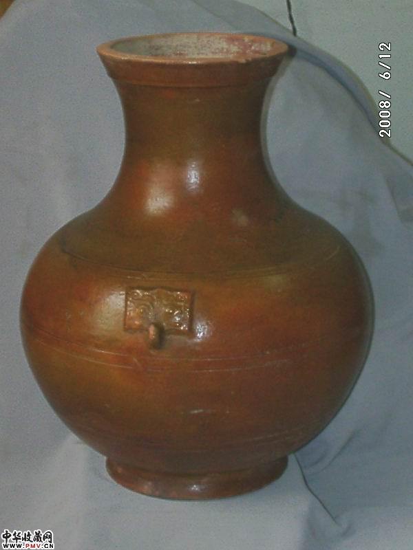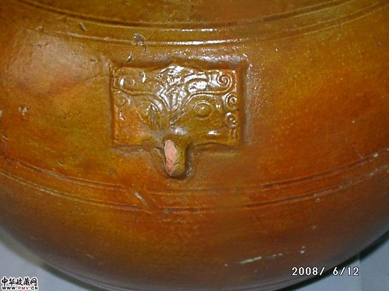 汉黄釉三玄纹双铺兽特大壶,已售 可预定