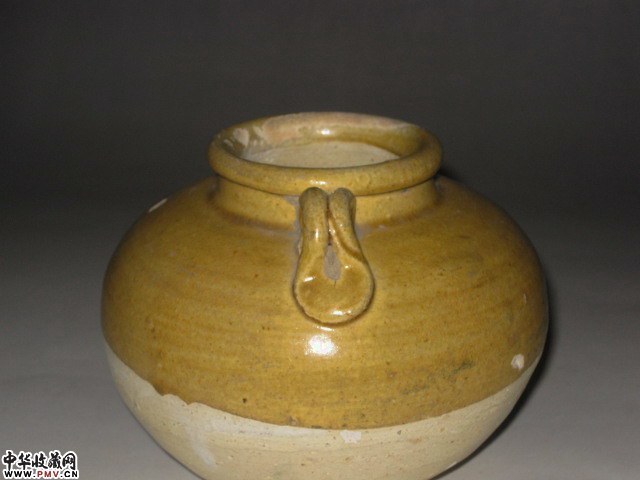 高8.5腹径10厘米,口有脱釉,身两磕釉点,窑带缺一耳,但不是碰掉的,断口满釉。釉水不错。窑口应是邢窑,属唐三彩一道釉。只是一个瓷片的价。毛重500克,小包装。底价600元。