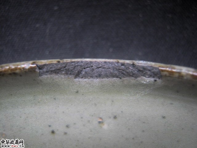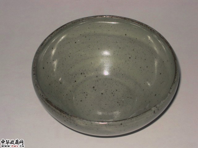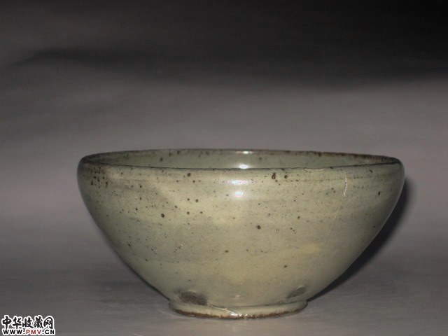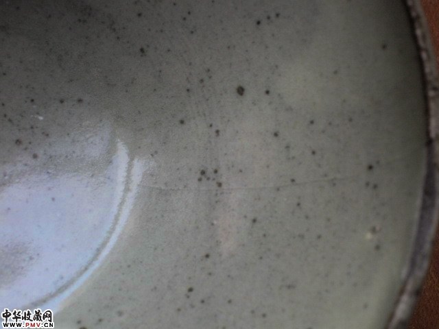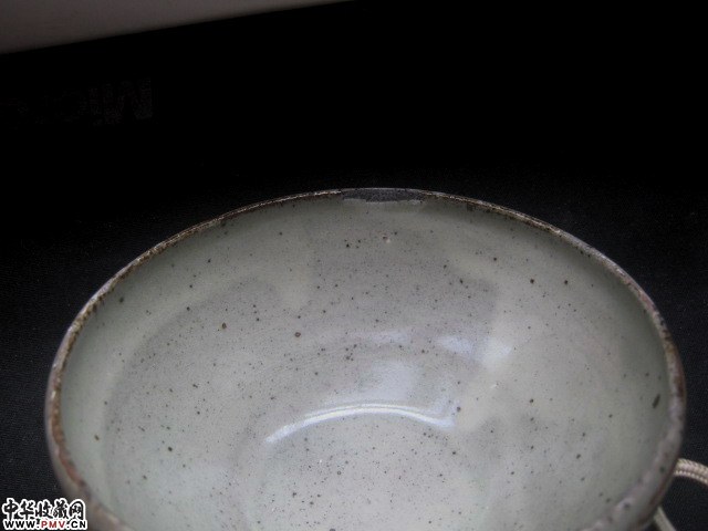 高5口径11厘米,口沿小磕下冲线倒地。余完好。此盏壁薄轻盈黑胎较为少见,应是临汝窑仿耀州。