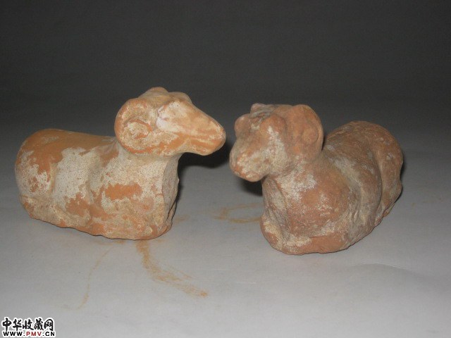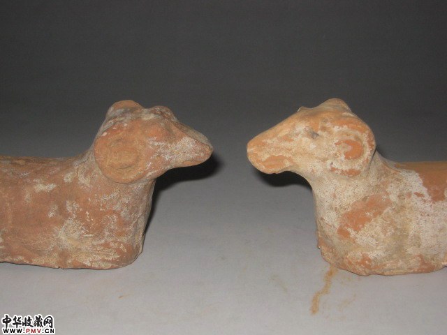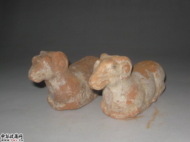 红陶卧羊一对