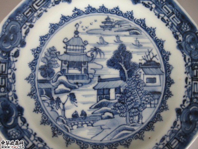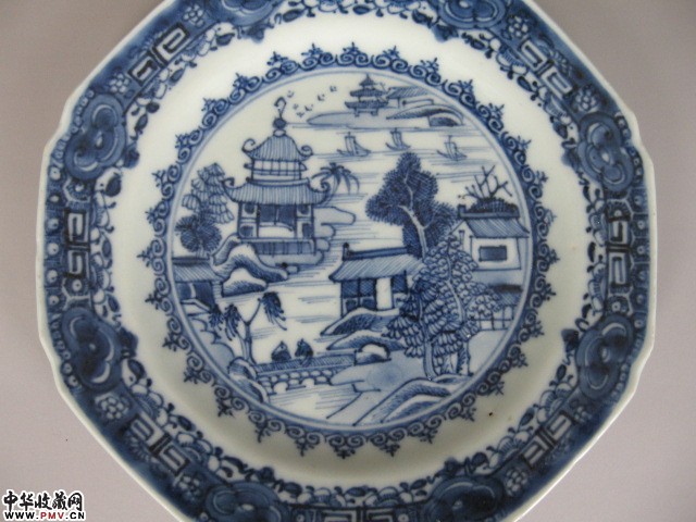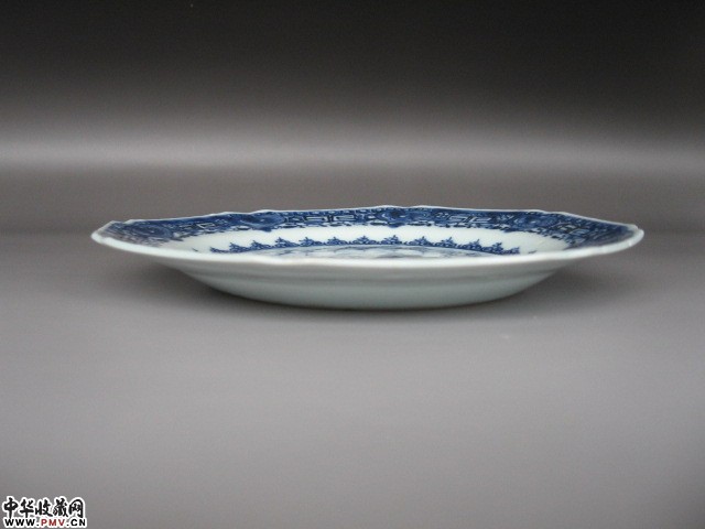 清乾隆 青花山水阁楼人物花口盘《已售》