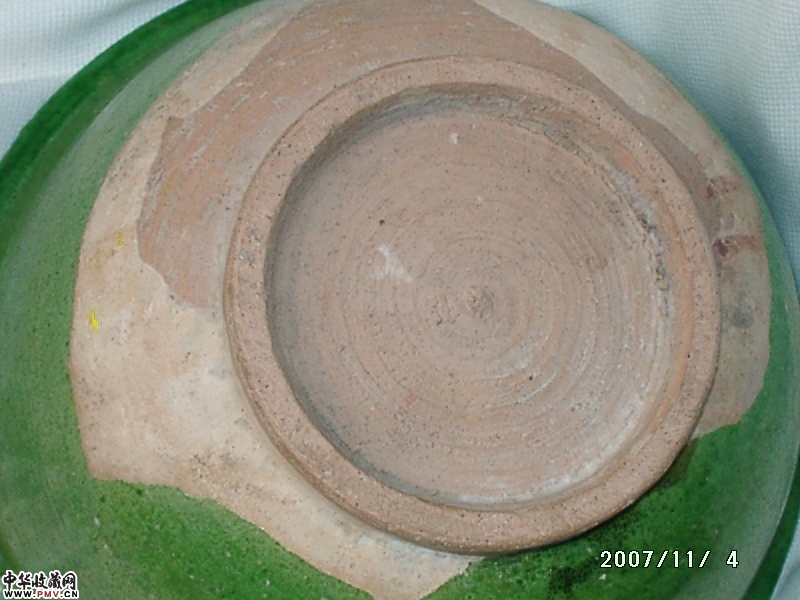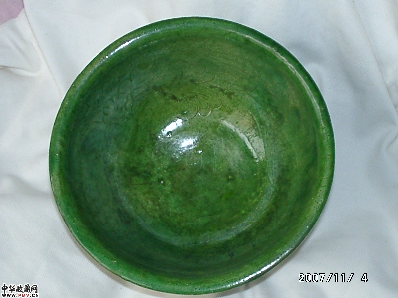 宋辽赤峰窑绿釉内刻牡丹花大碗