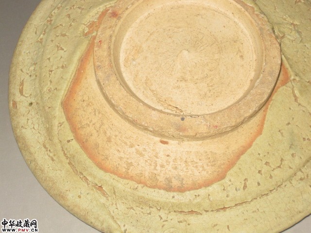 元钧窑豆绿釉盘 漏釉工艺 开门