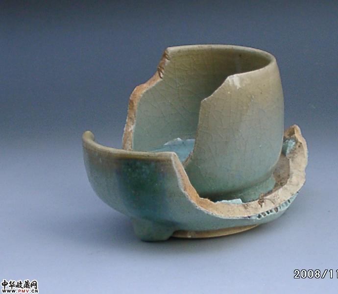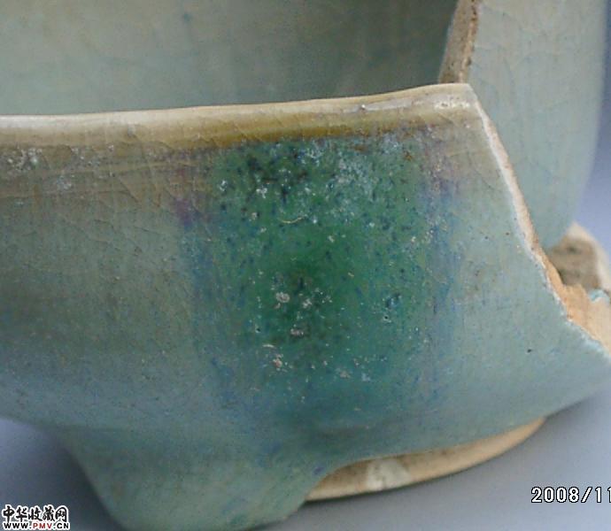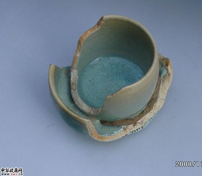 元钧瓷窑变绿斑托额盏残件 罕见绿斑 已售