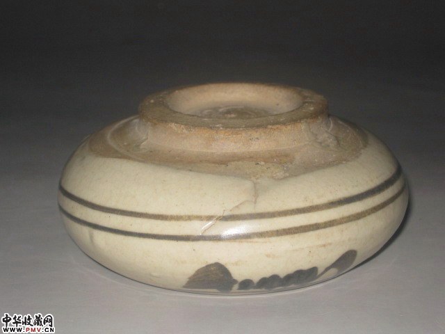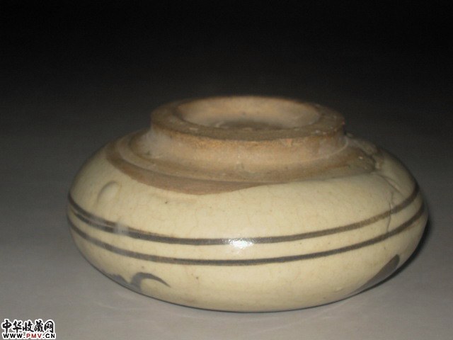 高4腹泾9厘米。水盂在磁州窑中并不多见。天然窑封及豆大垂釉不算什么毛病。釉水很好。