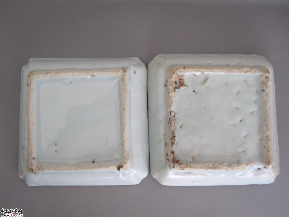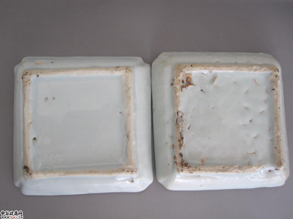 口径一个8x8厘米,一个8.1x8.1厘米,高:两个都是1.8厘米。俗话说:一方胜十圆。画面简笔写意,画师功力深厚,寥寥几笔,动物形象生动传神。胎体制作规整。唯局部小缩釉点,口沿局部小毛口。