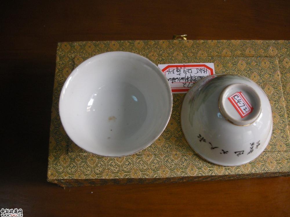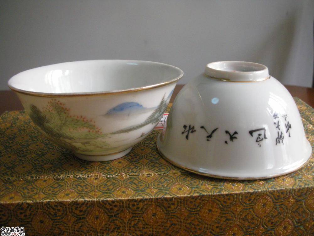民国 浅绛彩山水纹碗(一对)