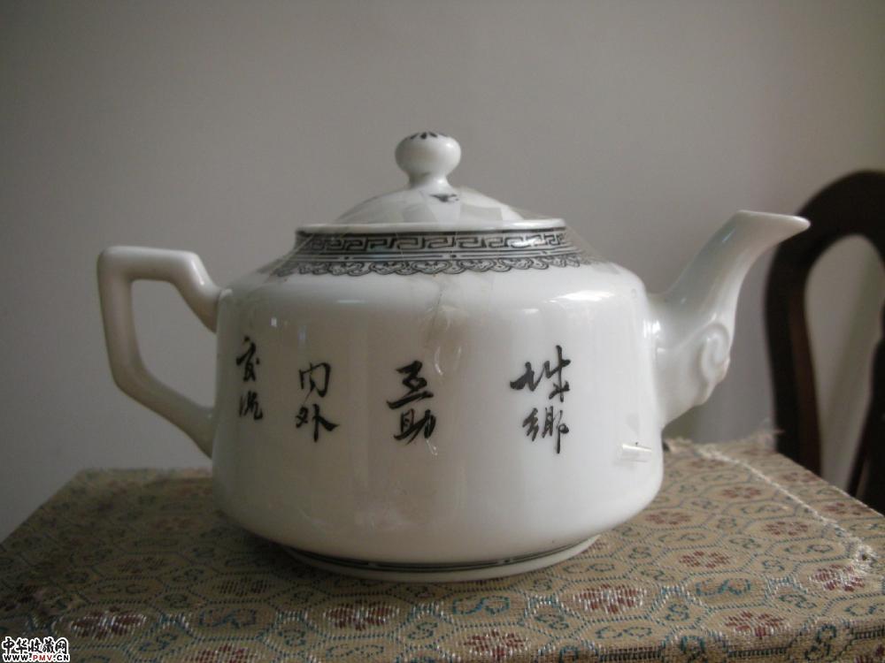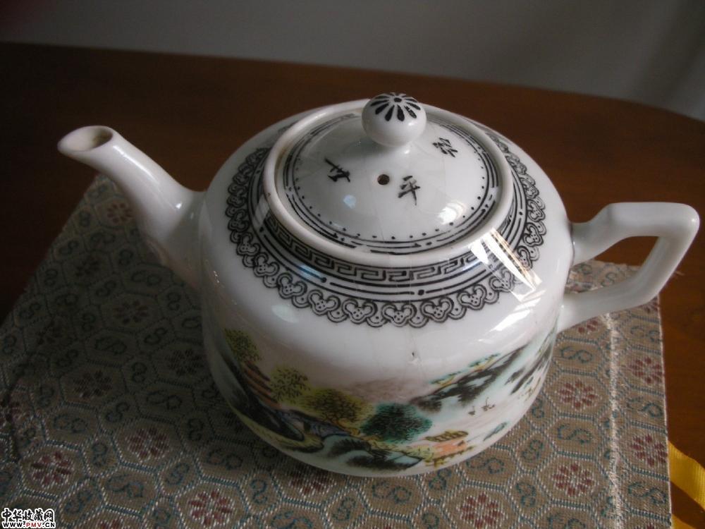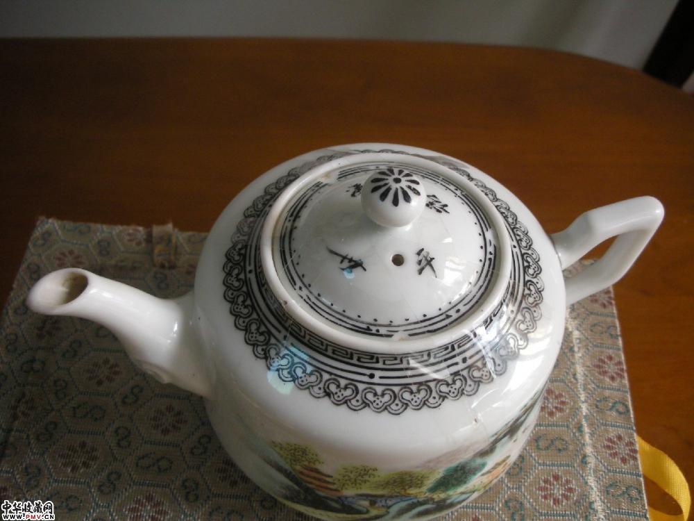 解放初 浅绛彩山水纹茶壶