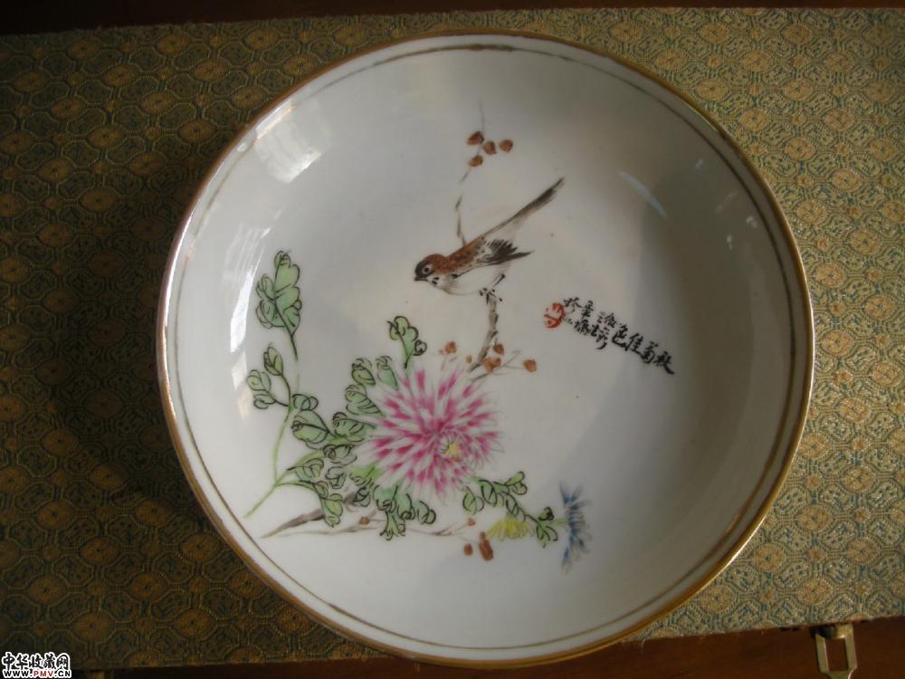 民国 粉彩花鸟纹碟(一对)