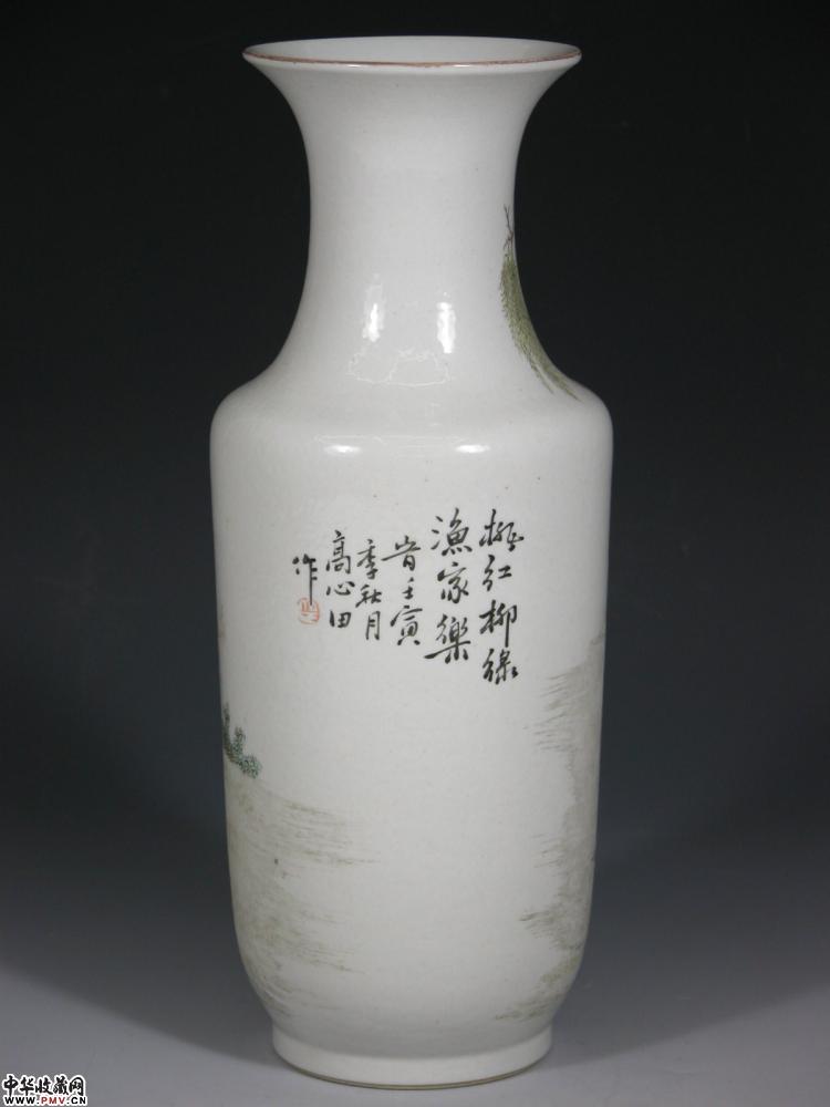 民国浅绛彩人物诗文瓶H30cm