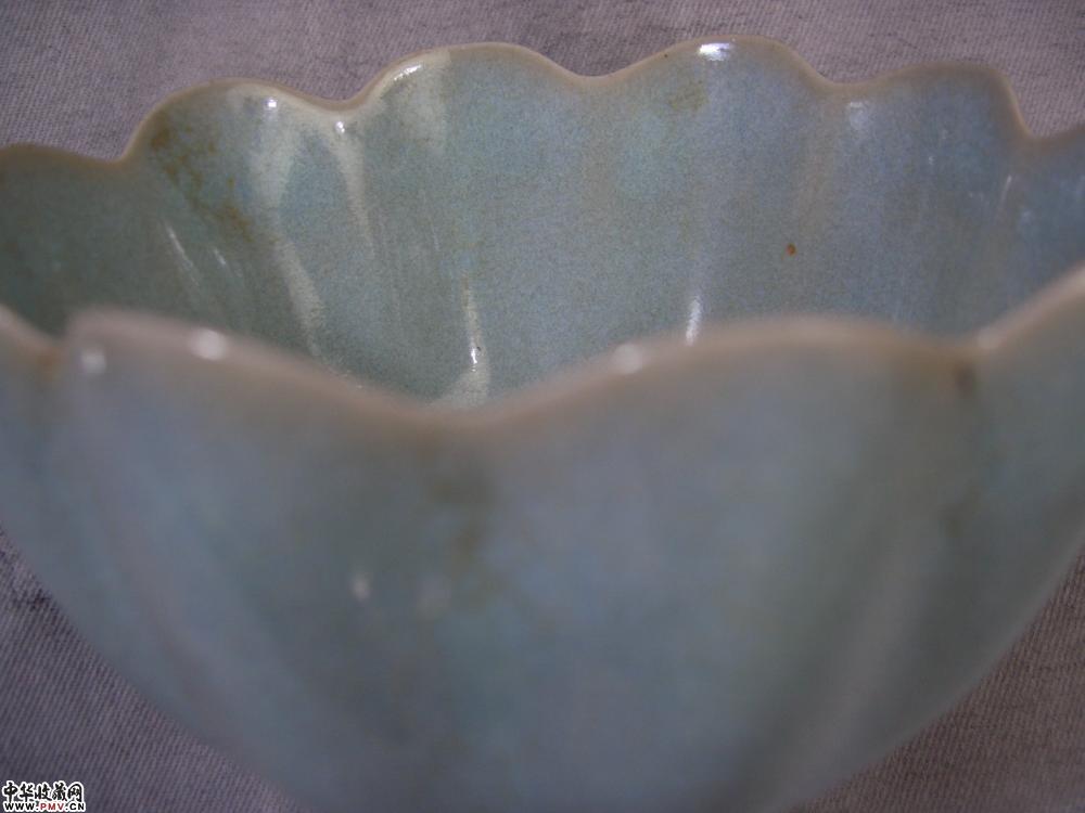 汝窑为宋代五大名窑之首,其优美的釉色典雅的造型为历代收藏者所青睐.莲瓣碗为宋朝典型器,此碗造型规整,天青釉,开片似蟹爪印,故有\