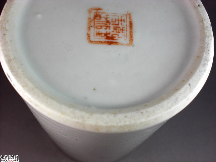 高11.8厘米,口径7.2厘米,完好!画工细致,用彩漂亮,造型规正,修足自然,底印“乾隆年制”红方款,开门到代,是一件非常值得收藏的文房佳器!