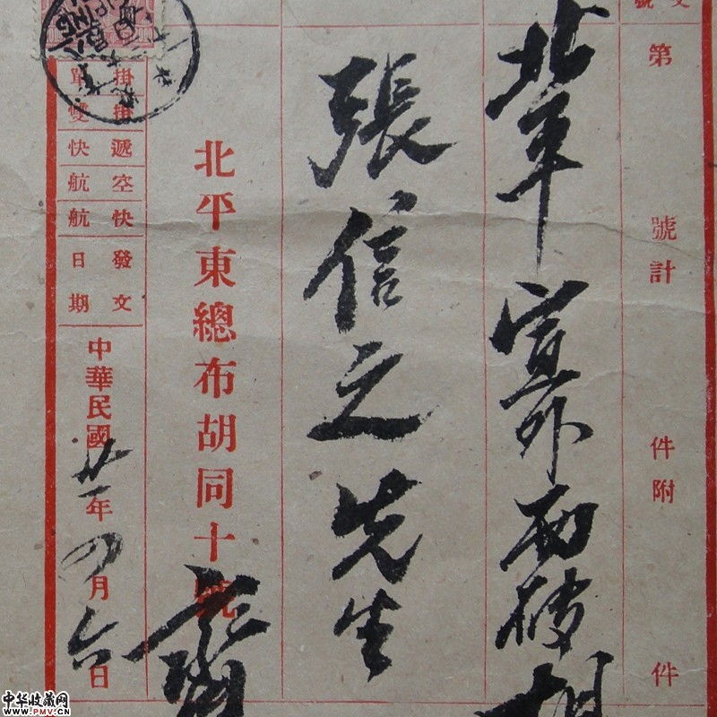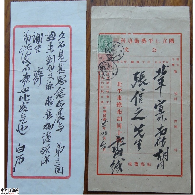 齐白石 致张信之信札水墨纸本1页带封信札 26×10厘米