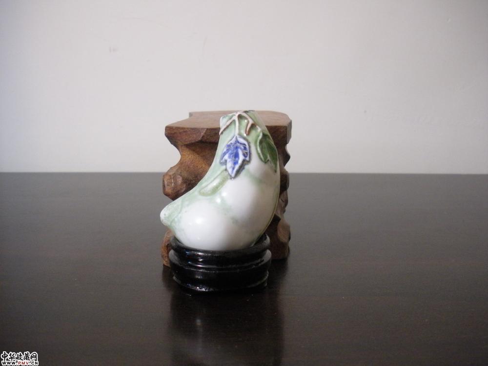 清.中期雕瓷加紫描金青豆鼻烟壶