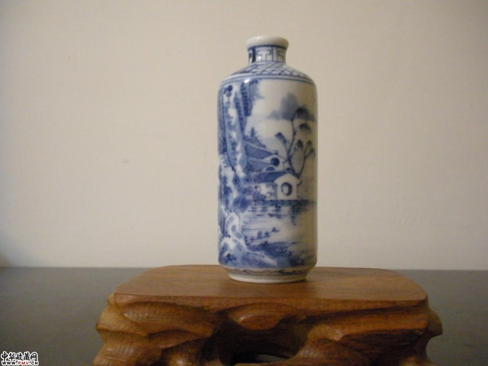 清.青花精品渔樵耕读鼻烟壶