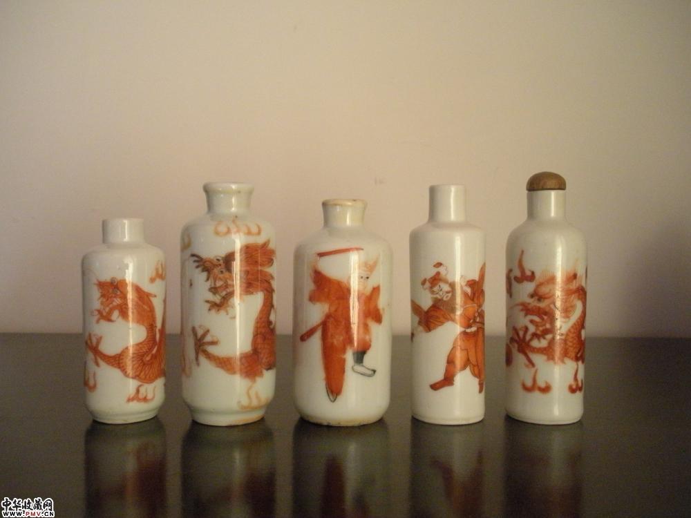 清.青花.矾红.鼻烟壶9个