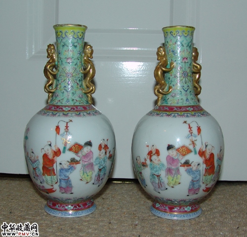 嘉庆粉彩婴洗瓶一对,嘉庆六字款