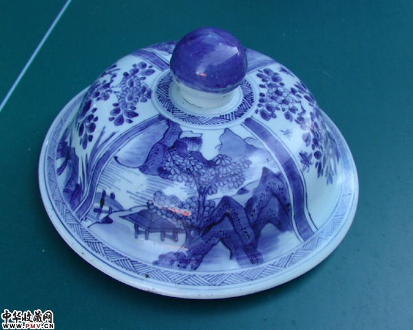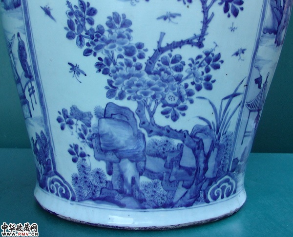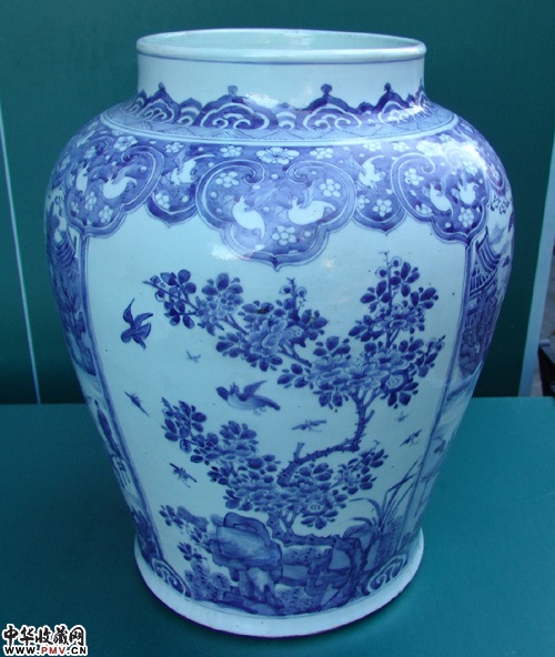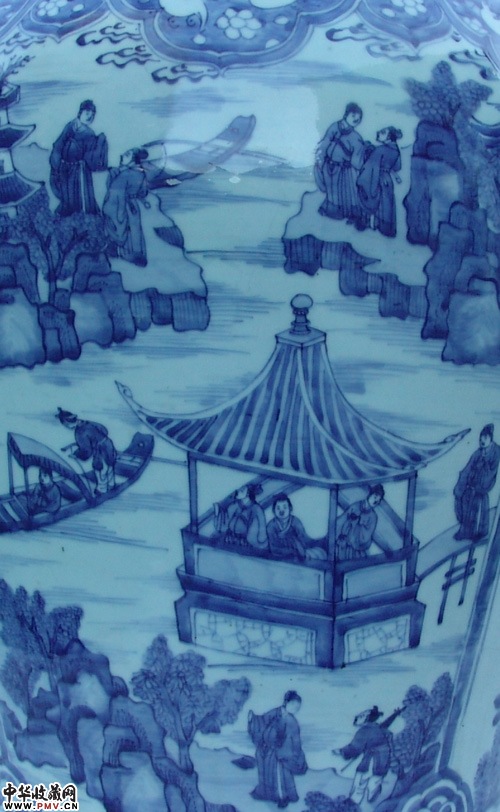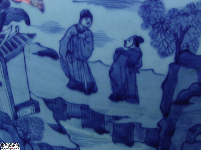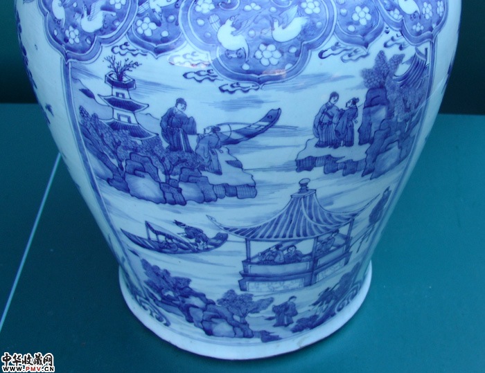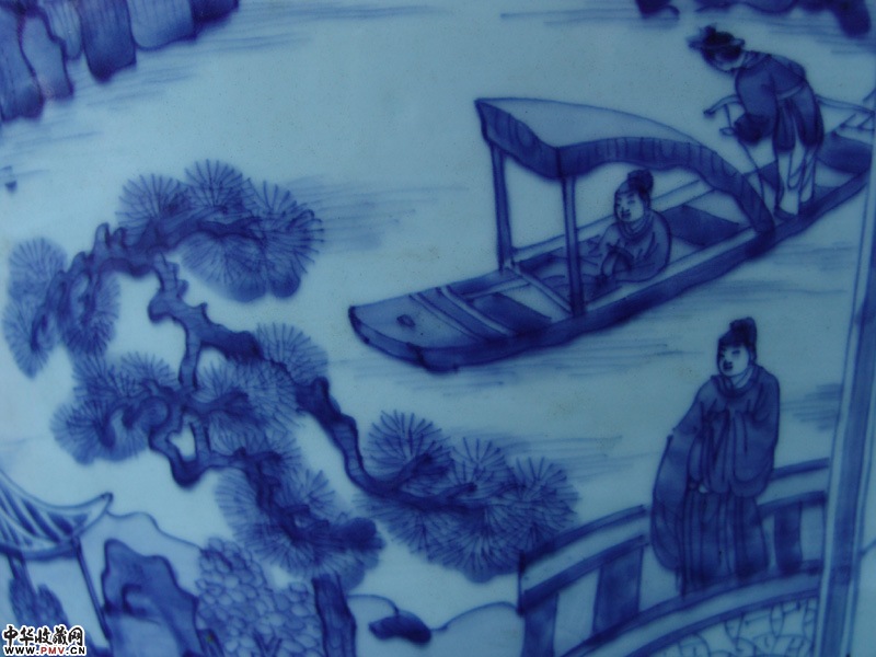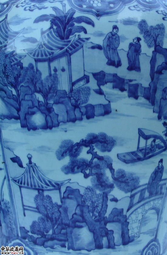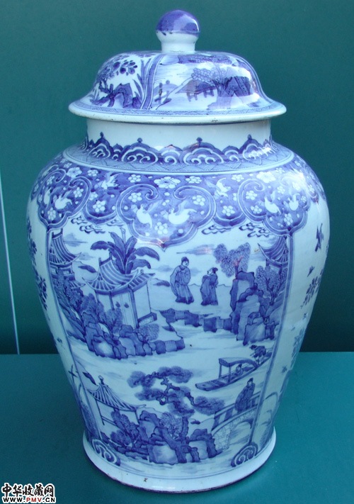 清早青花山水人物大罐