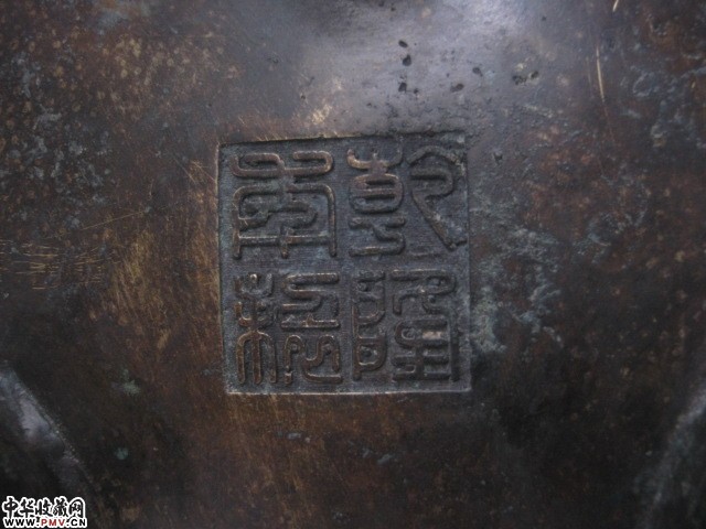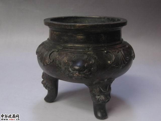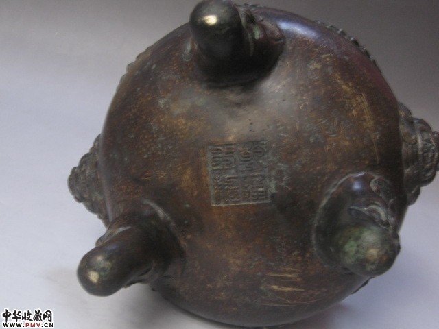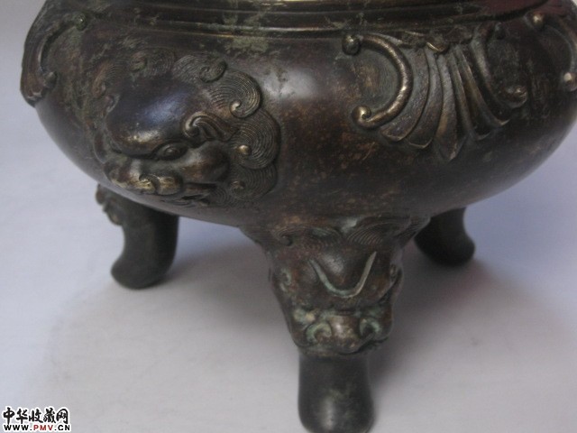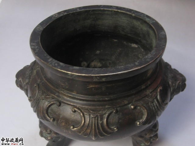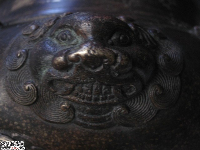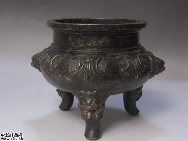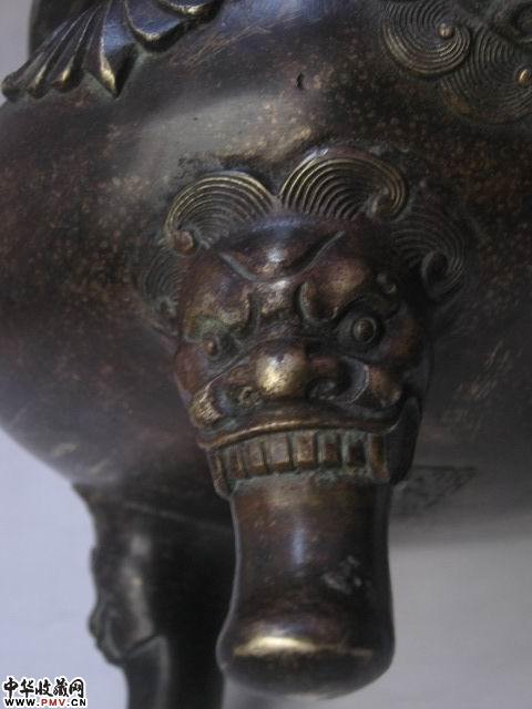 清代双铺首兽足花草纹大铜香炉 乾隆款