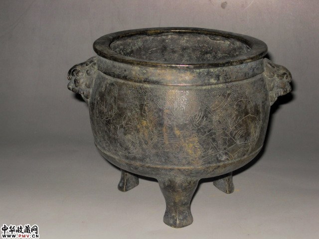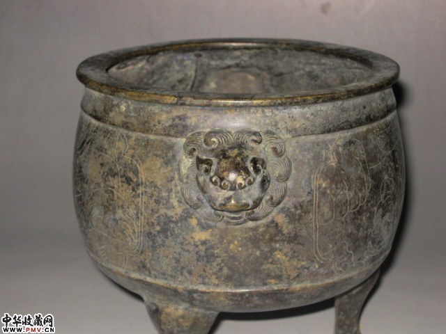 双铺首刻花三足炉