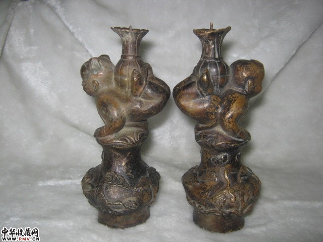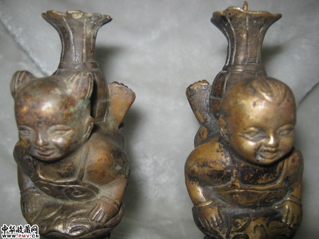 乾隆年制款童男童女铜灯台