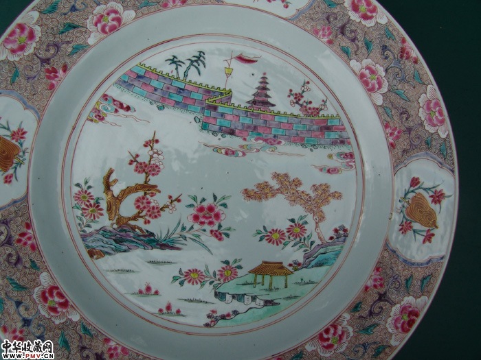 乾雍粉彩山水纹大盘40厘米直径