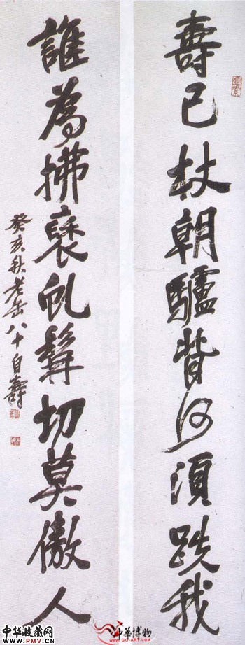 近现代吴昌硕 行书自寿联