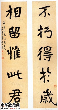 清李瑞清 五言行书对联“不朽得于岁”