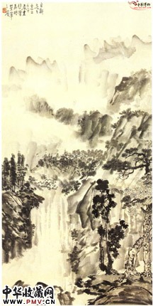 在作画上,徐悲鸿青年时期以素描为最出色,所作人体,善于将线描与明暗结合起来,外形准确,风格简洁,有很高的艺术造诣。后以准确的造型、传统笔墨工具画人物、动物、花鸟和风景,探讨融会中西的“写实彩墨”,在40年代产生了深刻的影响。此幅墨笔山水,笔调清新,笔法简逸,非常富有意境。