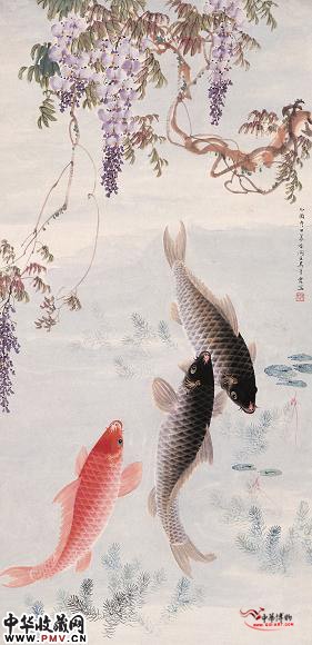 近现代吴青霞 紫藤锦鲤