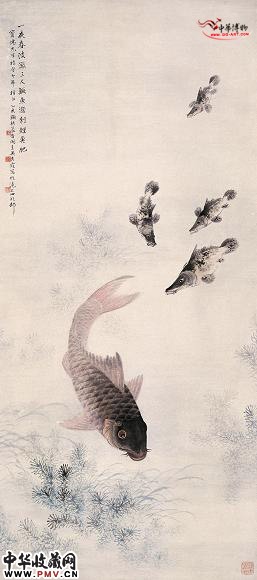 吴青霞 许麟庐 等 鱼乐图 立轴 设色纸本