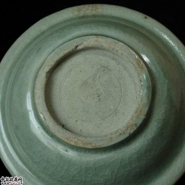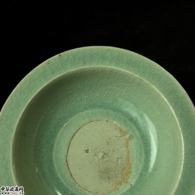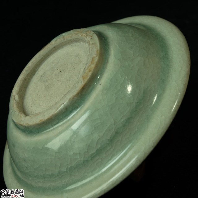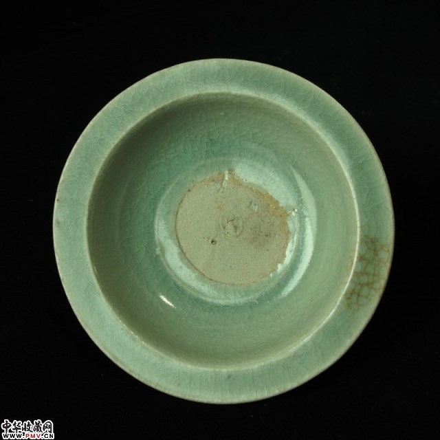 直径12cm 高3cm,灰胎,梅子青釉,品相如图,无损伤.起价8000元。