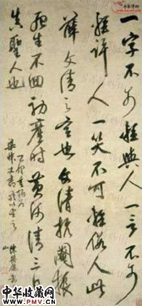 陈继儒(1558-1639),字仲醇,号眉公,华亭(今上海松江)人,自幼颖异,博文强记,工诗文,擅绘事,精鉴别。书法师学苏(轼)、米(芾),然不以酷肖前贤为能事,全以意拟之。所书既有东坡的自然洒脱和雍容敦厚,又有米颠的风樯阵马与沉着痛快。 此作上下通达,随机而发,结构以纵长取势,用笔不求笔笔中锋,时而内摁,骨力内蕴,时而外拓,逸气飘然,字态摇曳多姿,顾盼生情,既变化多端,又浑然一体。 陈继儒作品典雅而露气势,朴厚而溢幽淡,个中原因,还在于他长于诗文、戏曲、小说、绘画等书外功夫。
