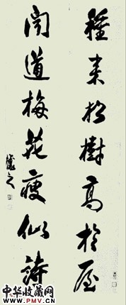 此“种来松树高于屋,闻道梅花瘦似诗”联具有较浓的碑意,但和后来以碑入行草的书家相比,吴让之书法无疑文雅的多了。以碑入行草最难在于即体现出碑的笔法又要与行草流转的特点结合起来,如果揉合不好,难免像吃夹生饭。吴氏此联应是处理较好的一例,用笔即有方切遒劲的笔法,又有绞转多变的行草路数,具有古拙之美,摒弃柔媚与甜熟。