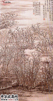 姚华 1928年作 晴恋溪阁 立轴 设色纸本