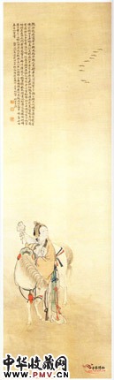 费丹旭工人物、肖像,尤精仕女,与改琦并称"改费"。其艺术创作以人物画为主,肖像画名闻一时,多作群像,形象逼真,神态自然,还擅长仕女画,体态轻盈,婀娜多姿,笔墨松秀,意境淡雅。画中的昭君风姿绰约,仪态飞扬,其纤张瘿弱又体现出一种离愁别绪和无奈。