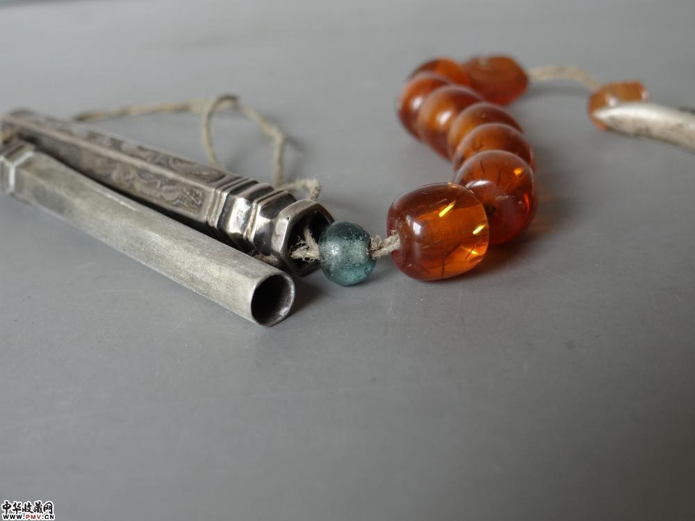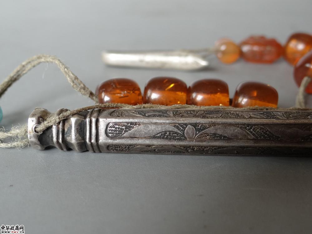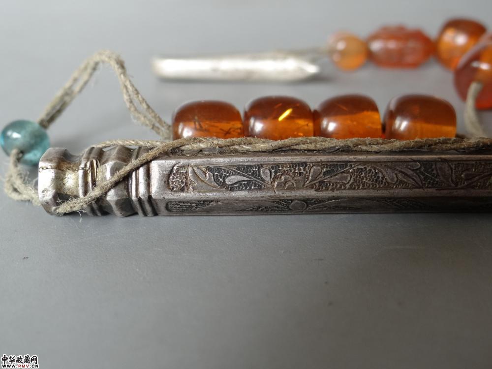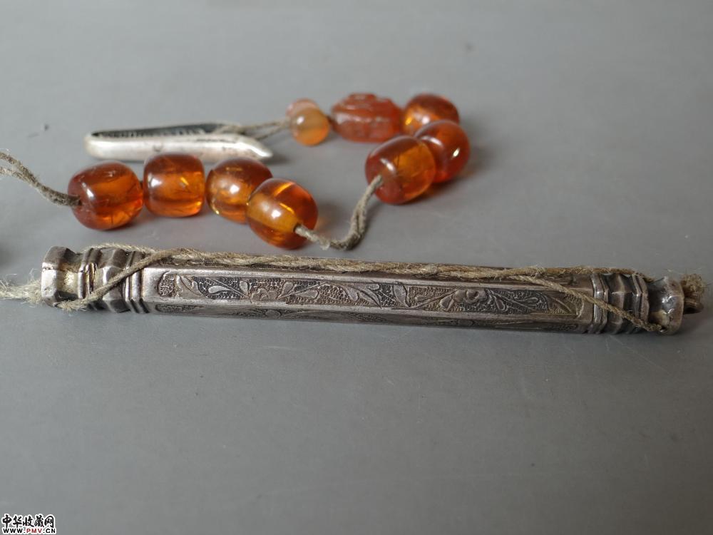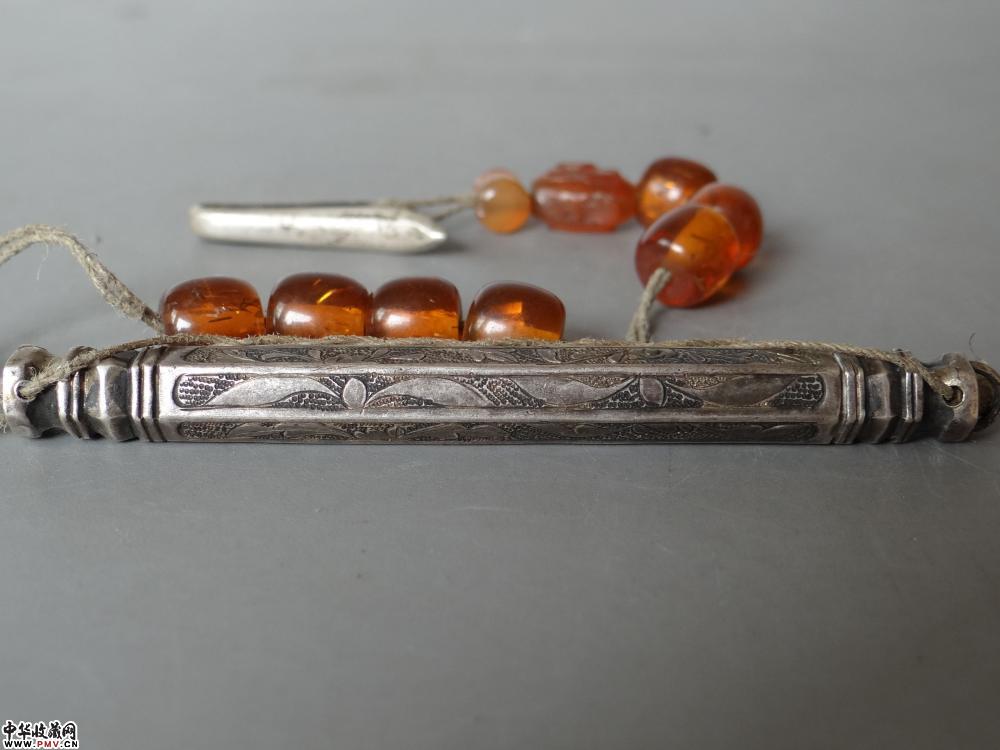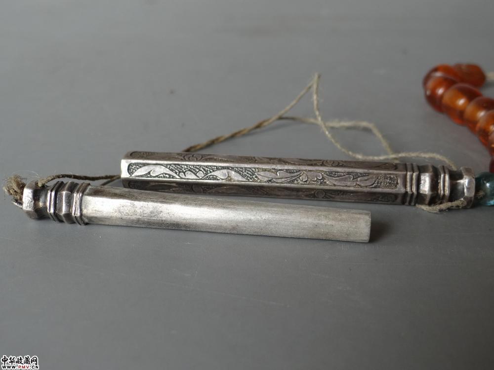 清晚期 錾刻六角银针筒,长8.8cm 完好。