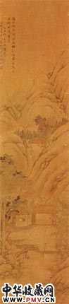 设色纸本。钤印:叔美;题识:满地桐阴净 沼溪竹影凉 最宜新月上 斜照读书堂 乙丑仲夏上瀚写奉 小梅司马大人雅正 叔美钱杜